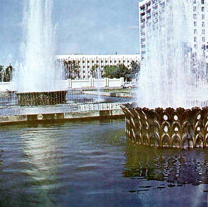 школы №1, (фото 1984 года). Садик с фонтаном напротив 1-й школы назывался "Три мушкетера", потому что в кустах за высокими лавочками лежали три надгробья каких-то
