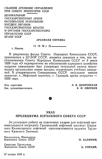 Грозненский Нефтяной Институт |